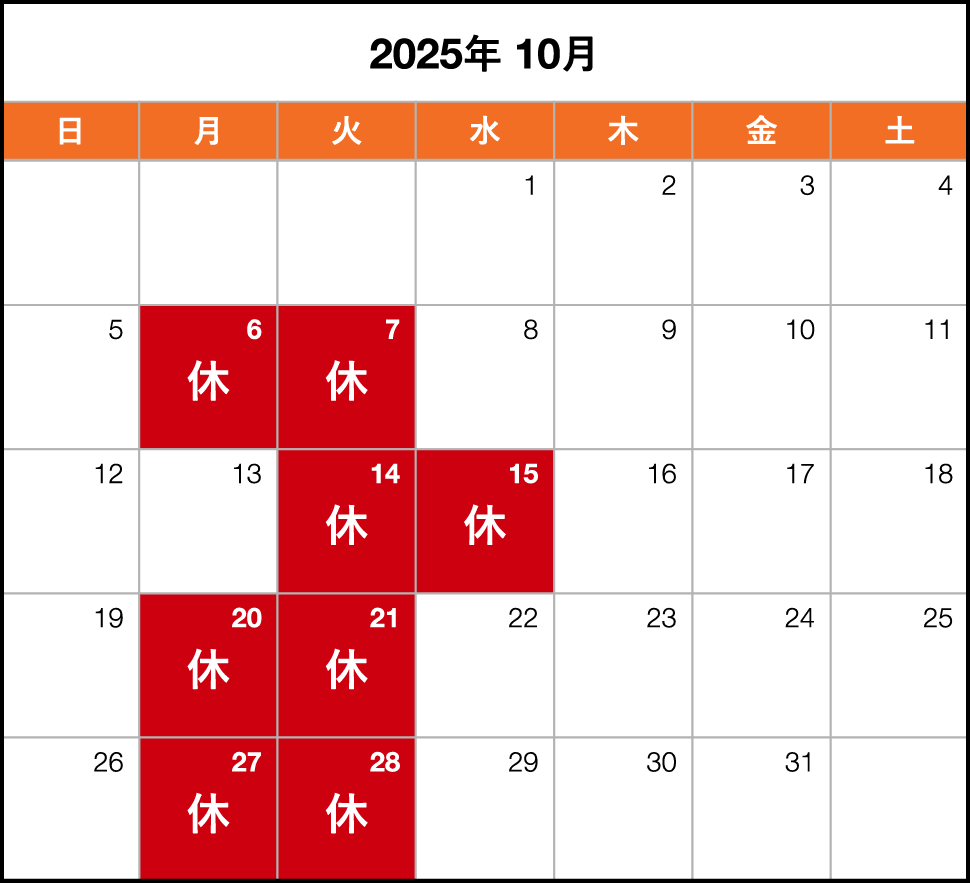 2025年10月のお休みを更新いたしました。