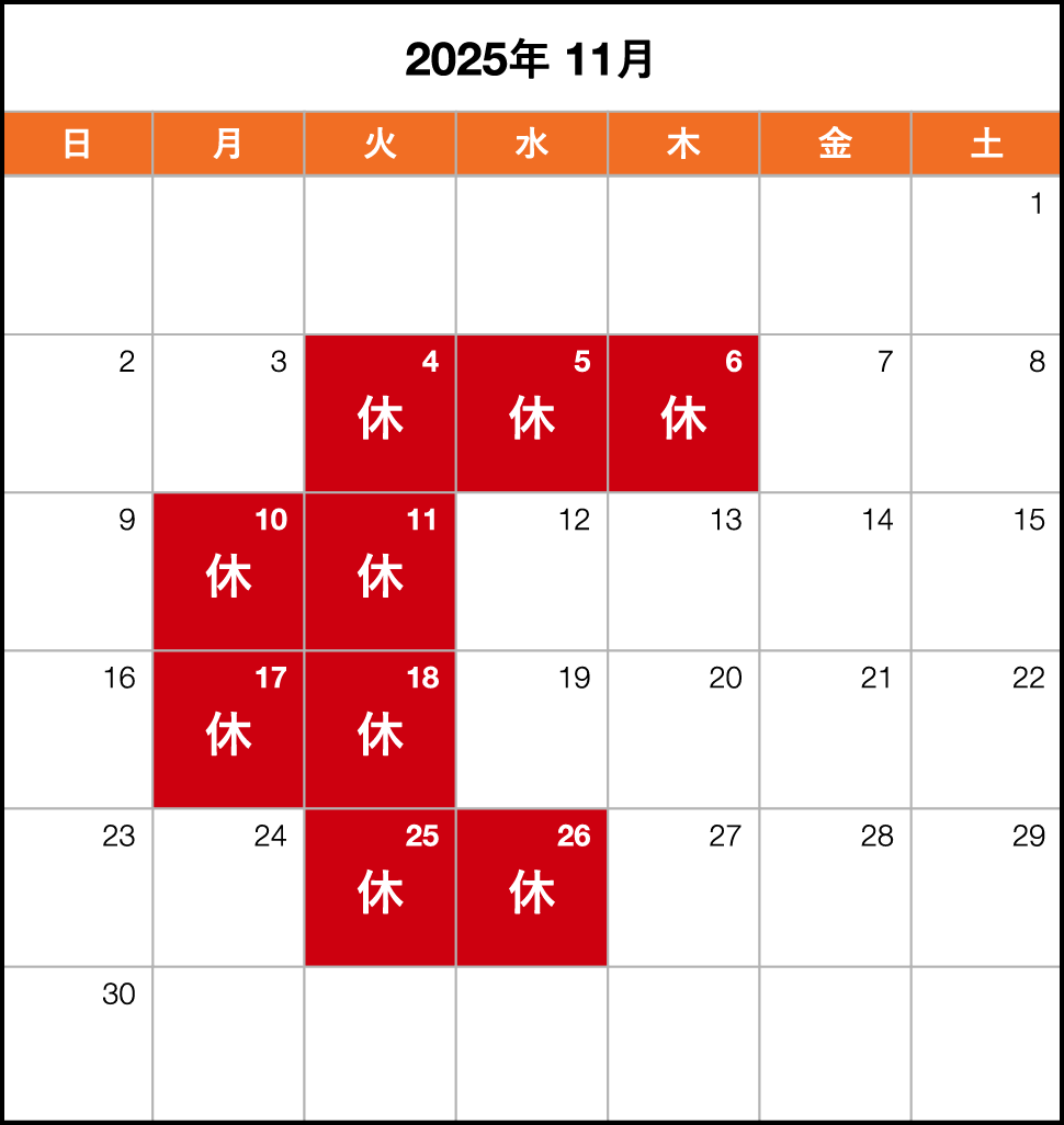 お休みは下記カレンダーをご確認ください。予定は変更される場合がございますので、直接お店にご確認ください。
