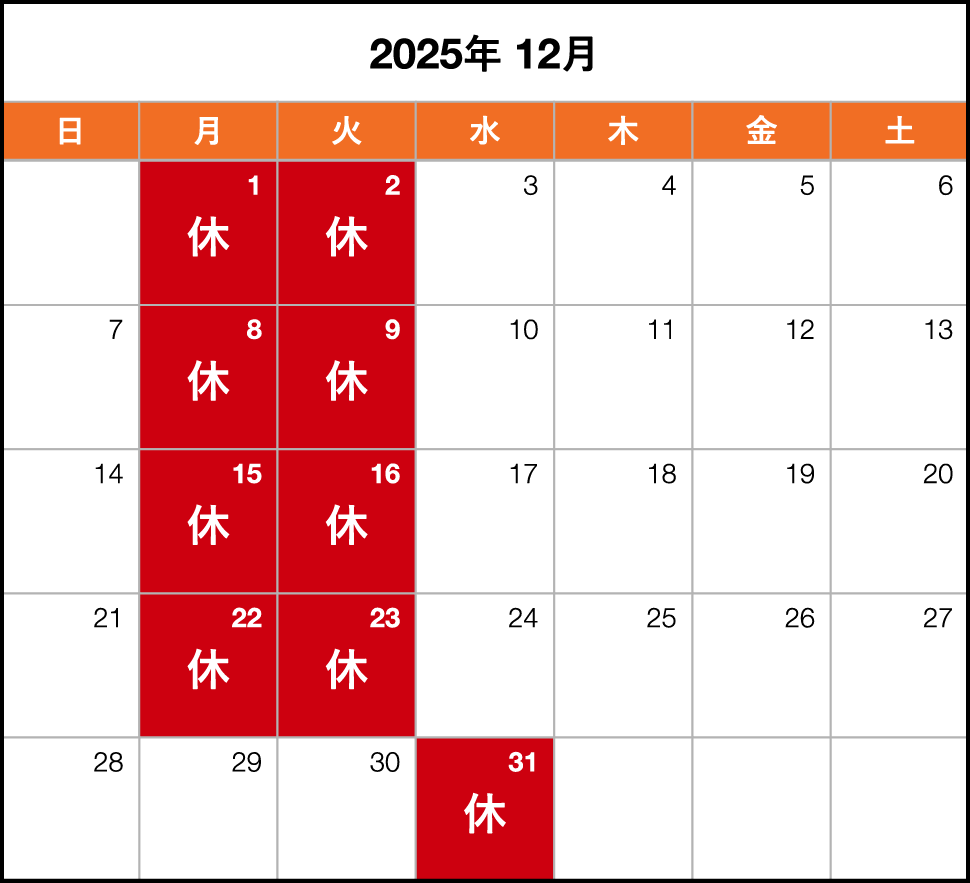 お休みは下記カレンダーをご確認ください。予定は変更される場合がございますので、直接お店にご確認ください。