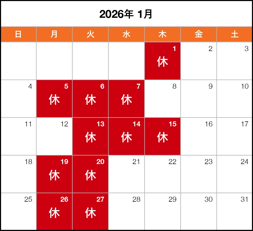 お休みは下記カレンダーをご確認ください。予定は変更される場合がございますので、直接お店にご確認ください。