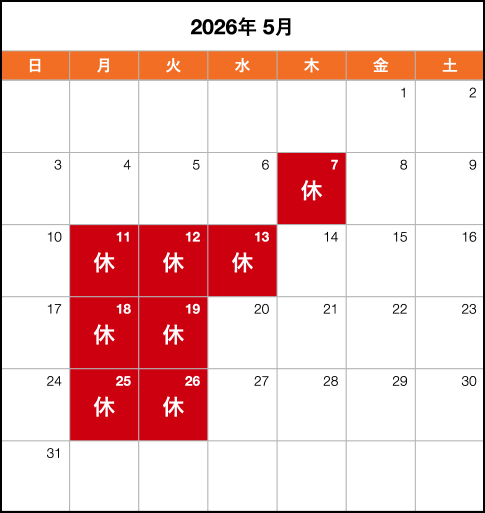 お休みは下記カレンダーをご確認ください。予定は変更される場合がございますので、直接お店にご確認ください。